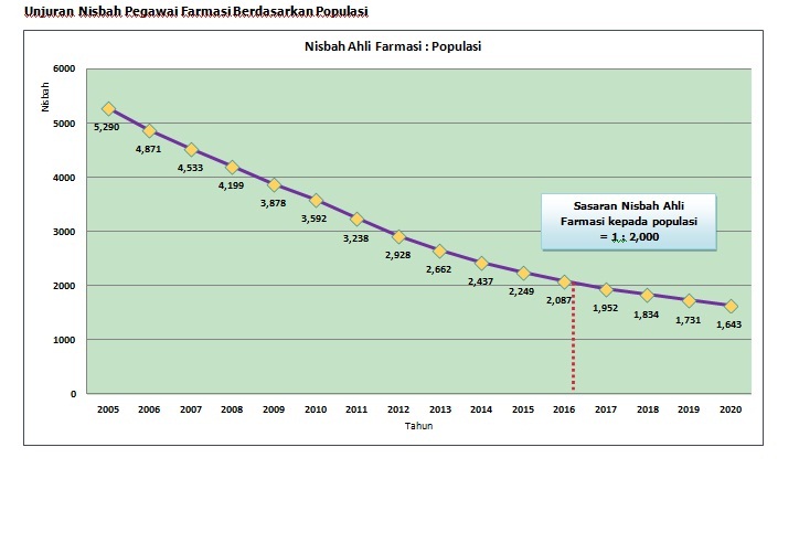 Berdasarkan nisbah Ahli Farmasi kepada populasi 1: 2000 yang dicadangkan oleh Pertubuhan Perbadanan Kesihatan Sedunia (WHO), nisbah dijangka akan dicapai pada tahun 2016